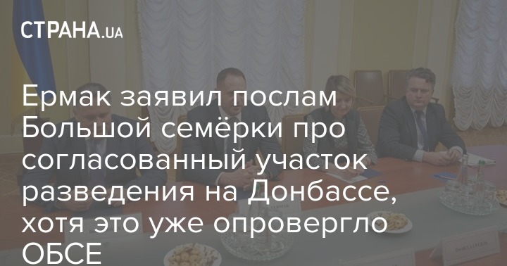 В четверг, 13 февраля, глава Офиса президента Украины Андрей Ермак провел встречу с руководителями посольств стран "Большой семерки", обсудил с ними ситуацию на Донбассе и заявил, что на встрече Трехсторонней контактной группы в Минске почти согласовали точку разведения сил.