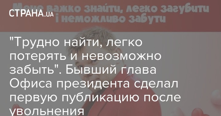 "Трудно найти, легко потерять и невозможно забыть". Бывший глава Офиса президента сделал первую публикацию после увольнения