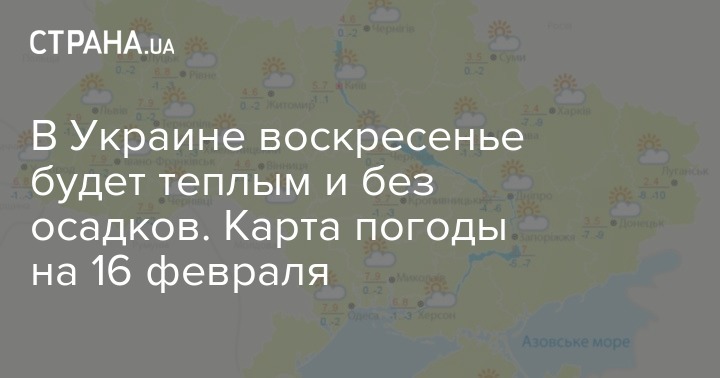 В Украине воскресенье будет теплым и без осадков. Карта погоды на 16 февраля