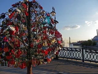 На третьем месте расположились деревья любви, которые находятся на мосту Лужкова в Москве.