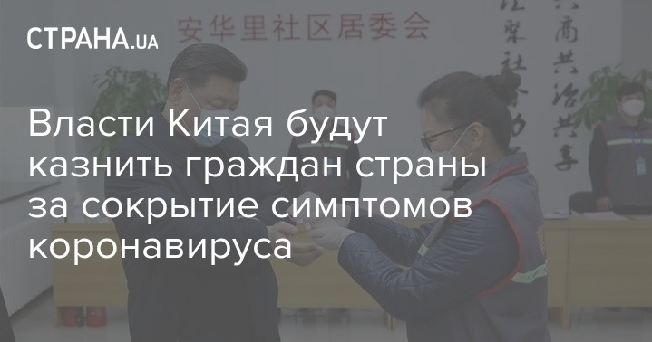 Граждане Китая, которые скрывают свои симптомы коронавируса COVID-19, будет караться тюремным заключением или смертной казнью. Преступлением будет считаться и сокрытие истории путешествий.