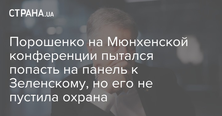 Бывший президент Украины Петр Порошенко во время Мюнхенской конференции по безопасности пытался попасть на панель, где выступал действующий президент Владимир Зеленский. Однако в зал его не пустили.