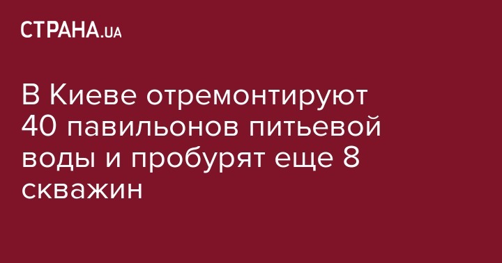 В планах Киевской городской госадминистрации - ремонт 40 бюветов и строительство 8 новых скважин до конца этого года. Об этом сообщает пресс-служба КГГА.