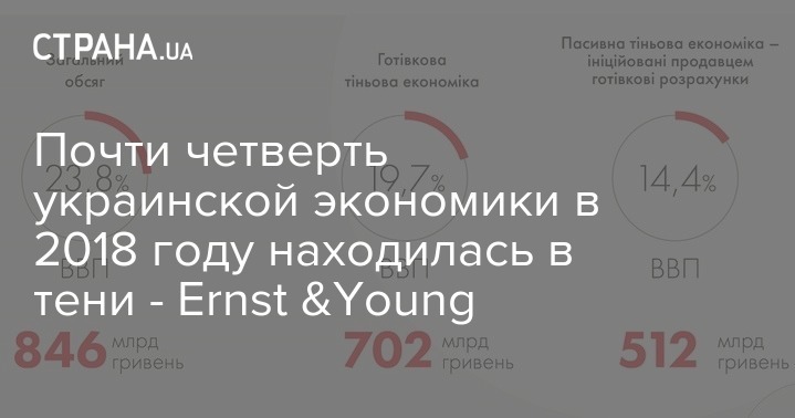 Доля теневых операций в Украине в 2018 году составила 23,8% ВВП, или 846 млрд грн. Львиную долю в ней занимает "пассивная теневая экономика", где инициатором соответствующего расчета является продавец.