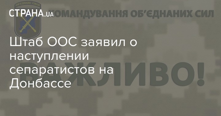 Штаб ООС заявил о наступлении сепаратистов на Донбассе