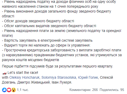 В Кабмине составили систему оценивания эффективности для украинских губернаторов. Работу руководителей ОГА будут оценивать по 24 критериям, а к ежеквартальному рейтингу KPI будут привязывать систему мотивации. Первое подведение итогов будет по результатам первого квартала 2020 года.