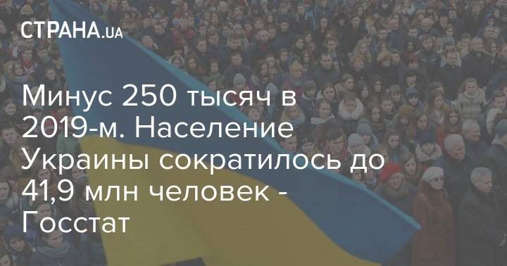 Минус 250 тысяч в 2019-м. Население Украины сократилось до 41,9 млн человек - Госстат