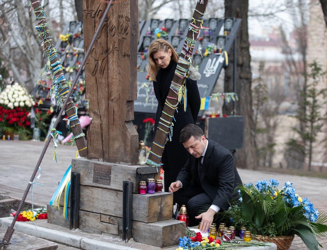 "Президент Украины Владимир Зеленский вместе с женой Еленой приняли участие в церемонии памяти Героев Небесной Сотни.