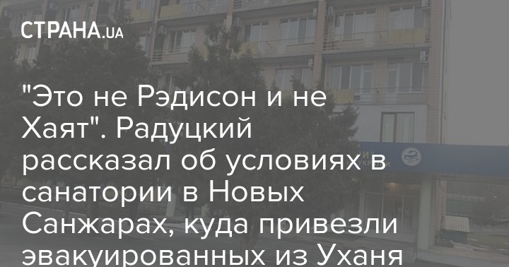 Председатель парламентского комитета по вопросам здоровья нации, медицинской помощи и медицинского страхования, нардеп Михаил Радуцкий высказался об условиях в санатории в Новых Санжарах, куда привезли эвакуированных их Китая людей. По его словам, это не пятизвездочный отель.