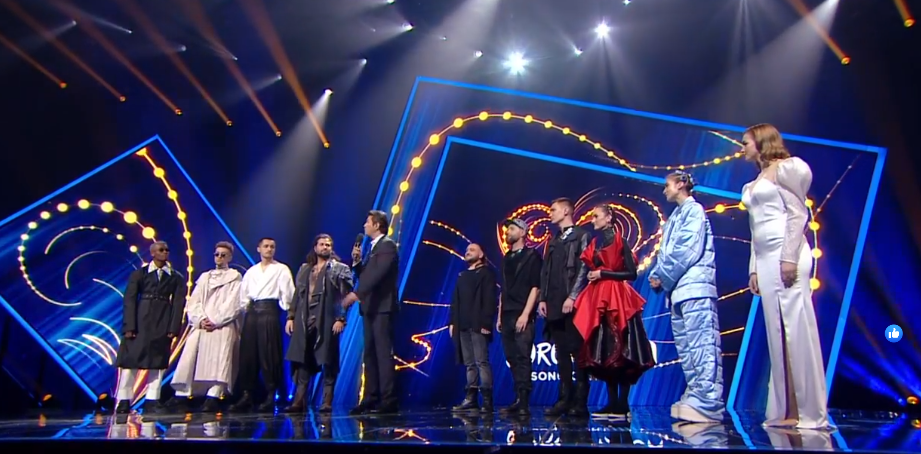 21:12 Закрывают конкурсную часть - открытие второго полуфинала Tvorchi. Джефри говорит, что в прошлый раз налажал с вокалом и теме более был поражен реакцией на их выступление. "Это очень вдохновляет"
