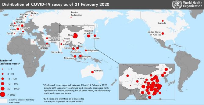 На данный момент статистика инфицирования COVID-19 за один день 21 февраля за пределами Китая выглядит так: