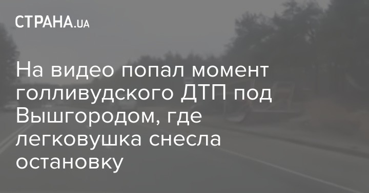 "Момент сегодняшнего ДТП возле города Вышгород. Скорее всего, водитель пытался вырулить, от чего его занесло и отбросило в остановку", - говорится в сообщении.