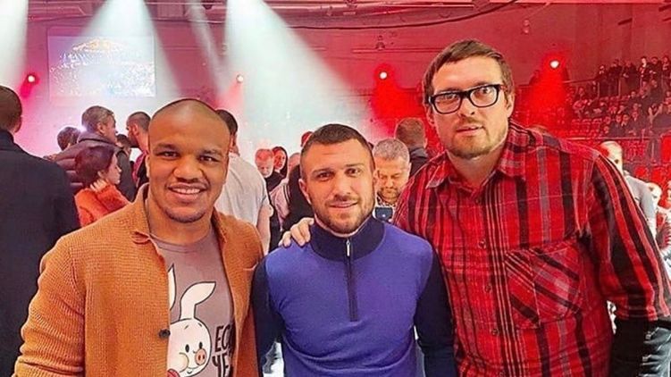 На нем, украинский чемпион запечатлен со своими коллегами - боксером Василий Ломаченко и борцом Жаном Беленюком.
