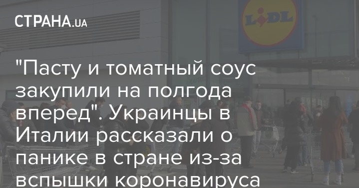 "На выходных во многих магазинах Милана сметали продукты. Люди запасаются на время карантина. Пасту и томатный соус закупили на полгода вперед. Очереди были страшные. Но, говорят, в понедельник будут новые завозы. В гипермаркеты можно зайти только в маске, кто-то шарфами заматывается. Их, кстати, в аптеках раскупили, я нашла в городе Комо под Миланом в строительном магазине - 3 маски за 4 евро. В Сесто на границе с Австрией закрыли все супермаркеты", - рассказала живущая в Милане львовянка Оксана Блищик.