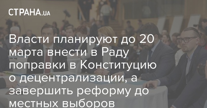 В Киеве начались публичные обсуждения закона о децентрализации. Офис президента, Министерство развития общин и территорий и профильный парламентский комитет планируют до 20 марта написать соответствующие изменения в Конституцию и внести текст на рассмотрение в Верховную Раду.