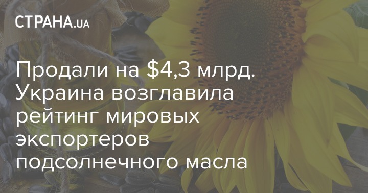 За 2019 год Украина стала самым крупным мировым экспортером подсолнечного масла.