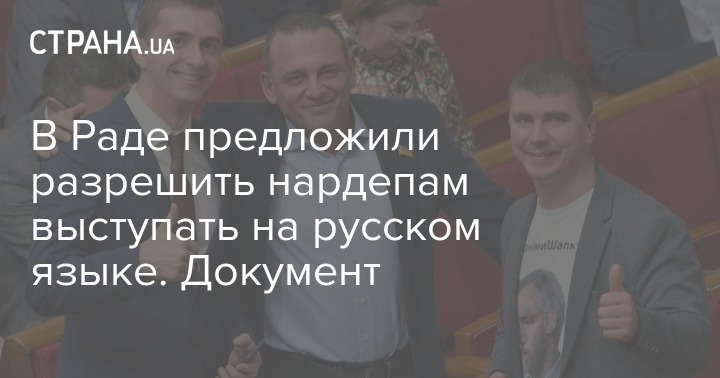 Согласно инициативе депутатов, их коллегам и лицам, на которых не распространяется действие закона "О государственной службе", на пленарных заседаниях Верховной Рады, парламентских слушаниях, в работе органов парламента следует позволить выступать по-русски по всех ситуациях, предусмотренных в статье 32 Регламента ВРУ.