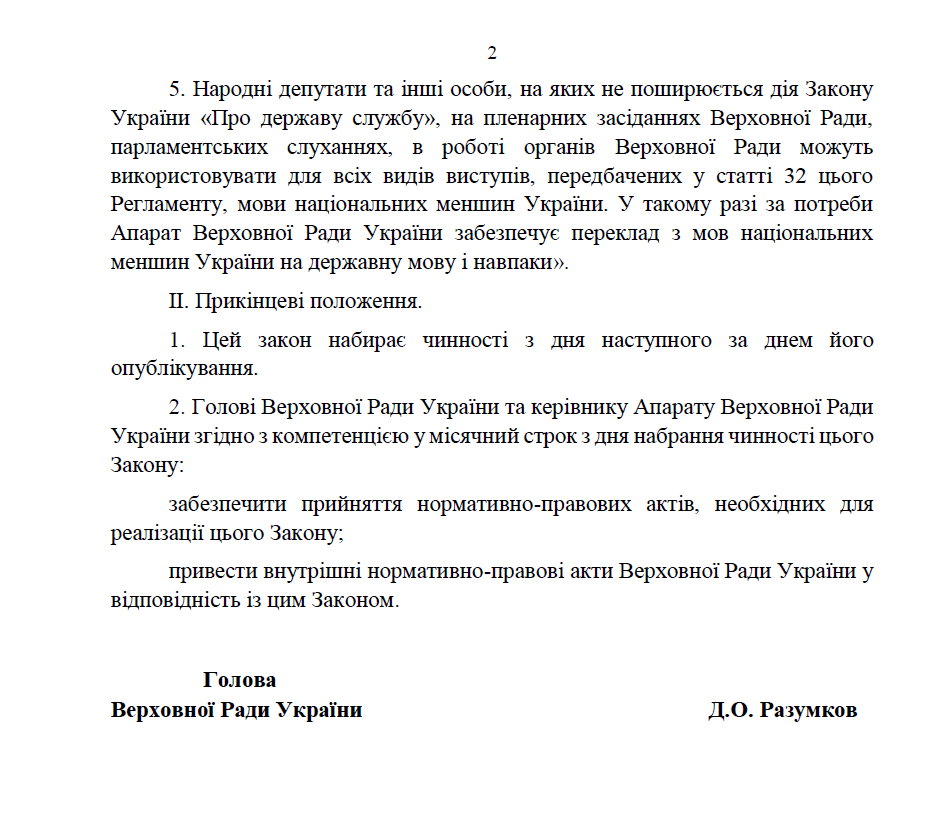А Аппарату Рады необходимо будет обеспечивать перевод с языков национальных меньшинств на государственный язык и наоборот.