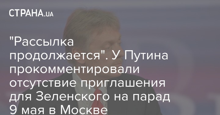 "Приглашение на 75-летие Победы президенту Зеленскому еще не направлялось. Рассылка приглашений продолжается", - сказа Дмитрий Песков.