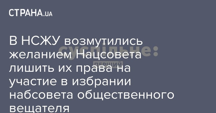 В Национальном союзе журналистов Украины протестуют против намерения Национального совета по вопросам телевидения и радиовещания лишить творческие союзы права на участие в будущих конференциях по избранию членов Наблюдательного совета "Национальной общественной телерадиокомпании Украины".