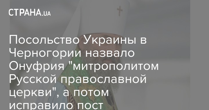 Посольство Украины в Черногории назвало Онуфрия "митрополитом Русской православной церкви", а потом исправило пост
