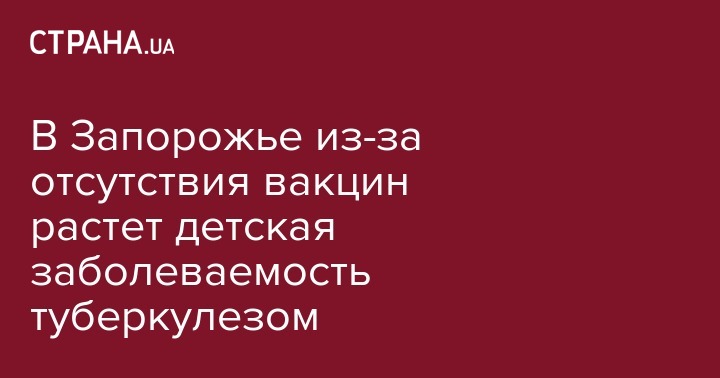 Количество детей, которые болеют туберкулезом, в Запорожской области выросло на 40%. По мнению врачей, к этому привело отсутствие противотуберкулезной вакцины, ведь последнюю государственную поставку ее в регион осуществили в 2013 году, передает "Радио Свобода".