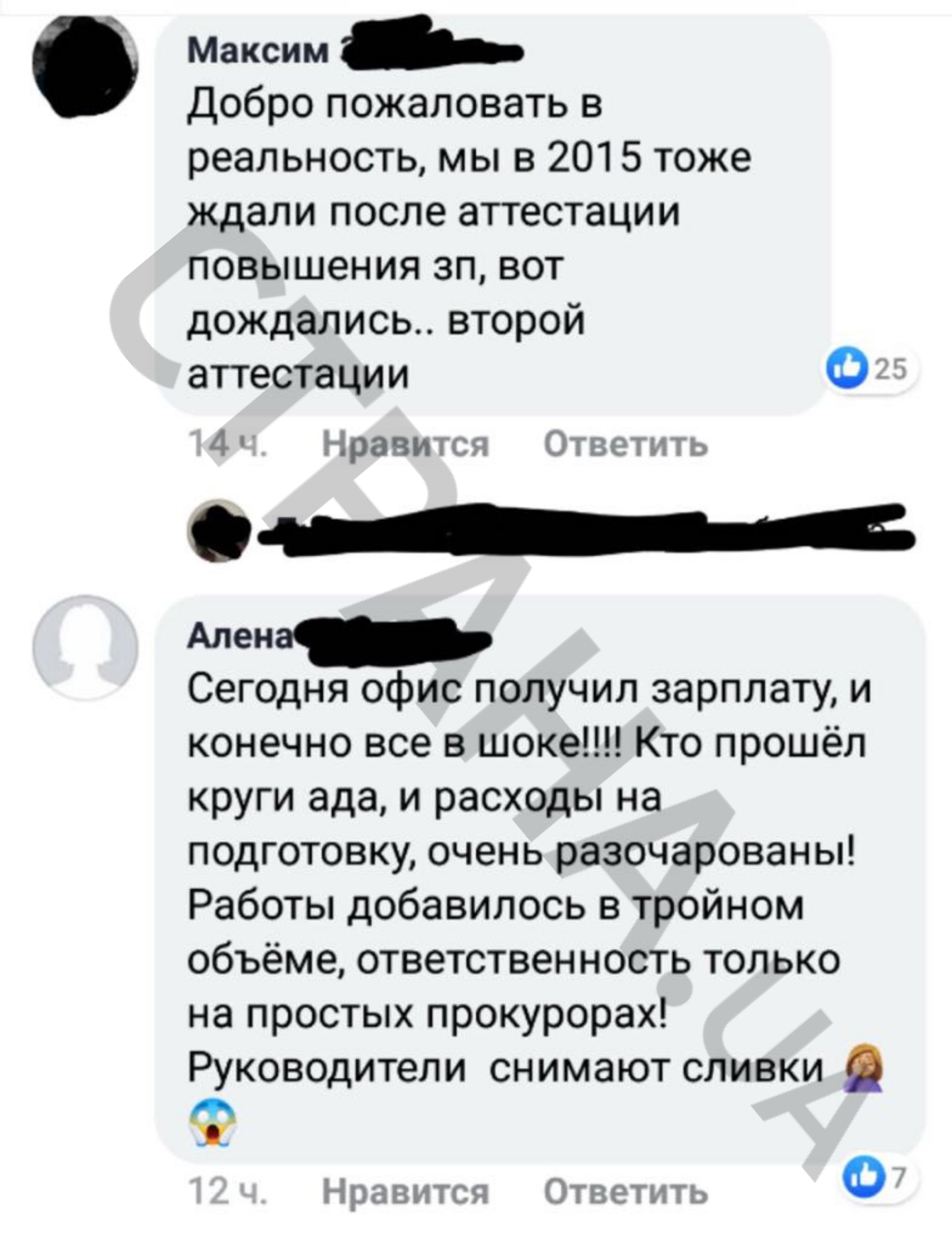 На эту тему в шутку в прокурорских группах в facebook выставляют цифры зарплат самого Рябошапки и его заместителей, которые получают по 300 и 200 тысяч гривен. А некоторые представители прокурорского сообщества призывают задуматься региональных и местных прокуроров – стоит ли проходить "три круга ада" переаттестации, чтобы потом получать зарплату меньше чем до реформы.