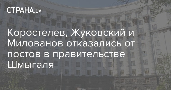 "Шмыгаль на встрече с главами фракций сказал, что Коростылев, Жуковский и Милованов отказались от предложенных им постов в его правительстве", - написал Алексей Гончаренко.