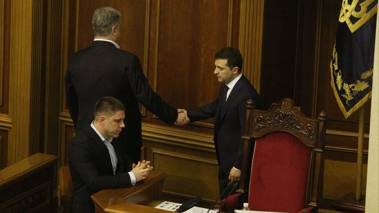 На заседании Рады Зеленский и Порошенко пожали друг другу руки. Фото
