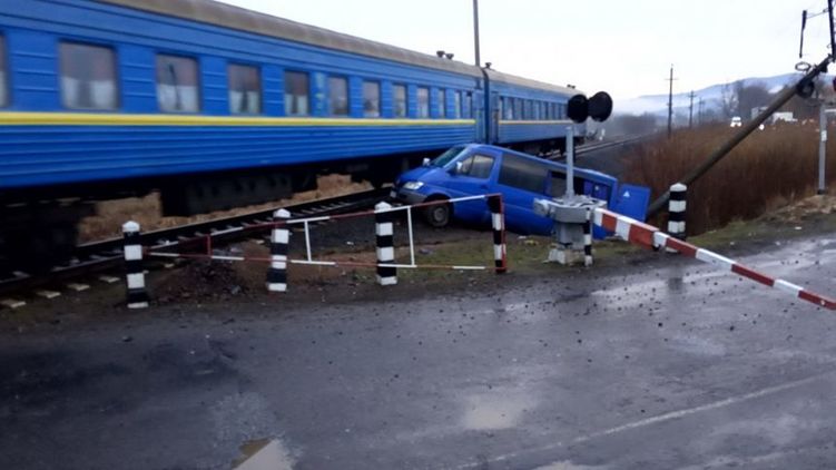 В четверг, 5 марта, в районе села Боронява на Закарпатье микроавтобус Mercedes-Benz Sprinter с 8 пассажирами в салоне столкнулся с поездом, потому что водитель авто выехал на железнодорожный переезд при опущенном шлагбауме и на красный сигнал светофора.