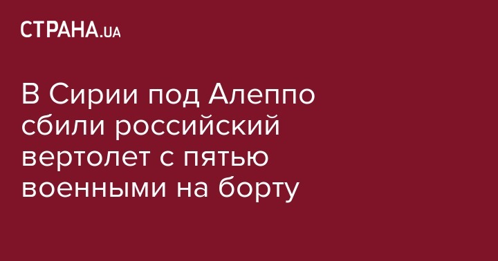 В Сирии под Алеппо сбили российский вертолет с пятью военными на борту