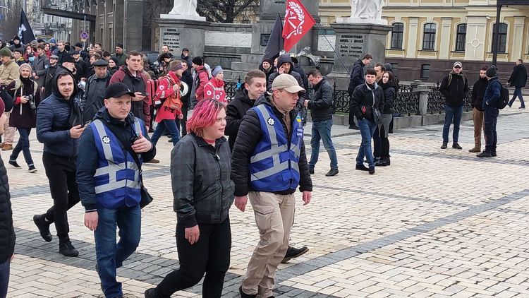 После окончания митингов, дамы начали "Марш женщин" под лозунгом "Бунтуй, кохай, права не віддавай". Участницы виступают за гендерное равенство и хотят "усилить голос женщин в обществе". Колонна идет под усиленной охраной полиции и Нацгвардии.