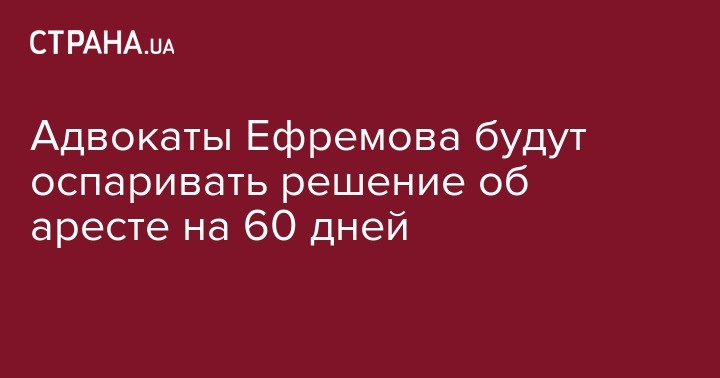 Защита экс-председателя фракции Партии регионов Александра Ефремова будет подавать апелляцию на решение суда о его аресте. Об этом сообщает корреспондент "Страны" с места событий.