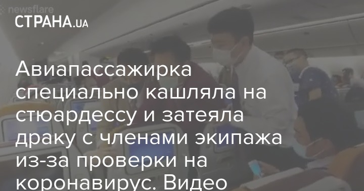 Авиапассажирка специально кашляла на стюардессу и затеяла драку с членами экипажа из-за проверки на коронавирус. Видео