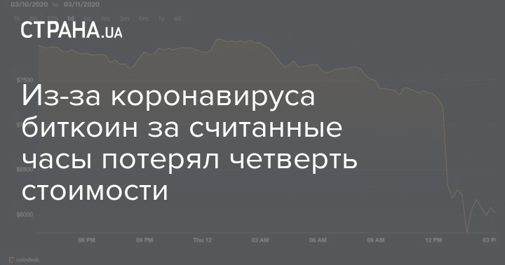 Из-за коронавируса биткоин за считанные часы потерял четверть стоимости