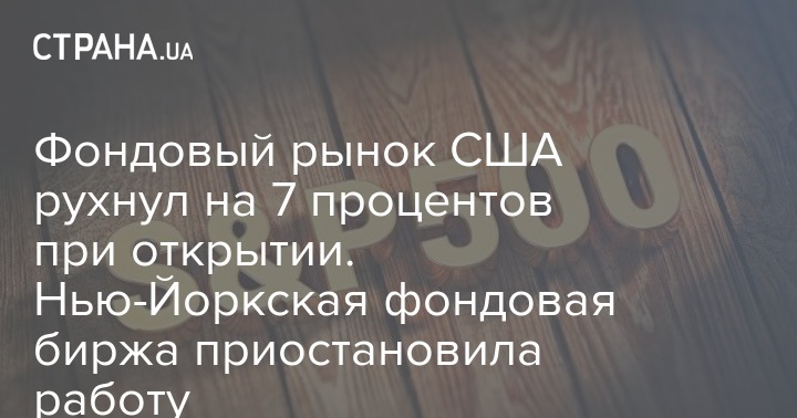 Фондовые биржи США сегодня открылись падением на 6-7 процентов, поэтому через 15 минут торги на Нью-Йоркской фондовой бирже были приостановлены на 15 минут. Это произошло после падения индекса S&P 500 на 7 процентов.