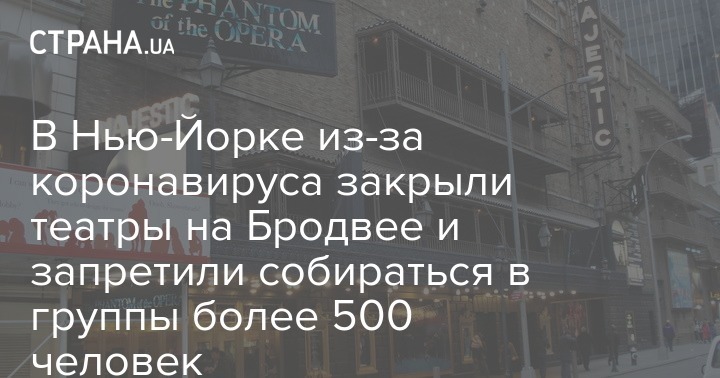 Власти Нью-Йорка из-за коронавируса ввели правило не собираться более 500 человек в одном месте. Также принято решение закрыть театры Бродвея до 12 апреля. Об этом пишет The New York Times.