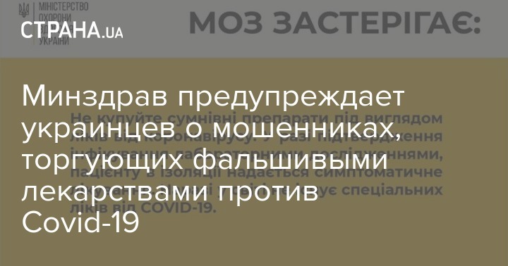 Минздрав Украины выступил с официальным предупреждением, что в стране учащаются случаи мошенничества, когда аферисты за огромные деньги предлагают больным якобы средства от коронавируса Сovid-19.
