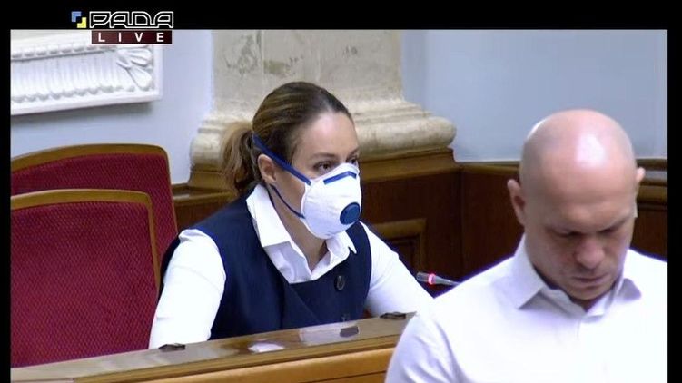 Наталья Королевская в респираторе. Скриншот заседания Верховной Рады от 17 марта