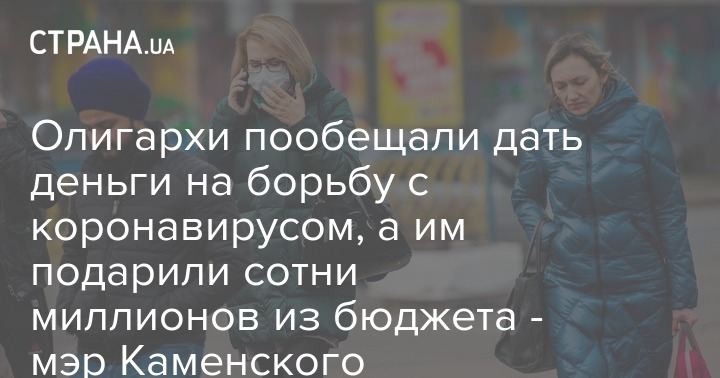 Олигархи пообещали дать деньги на борьбу с коронавирусом, а им подарили сотни миллионов из бюджета - мэр Каменского
