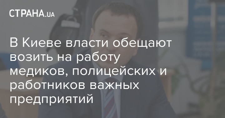 Власти Киева обещают на время карантина организовать развозку к местам работы сотрудников медицинских учреждений, правоохранительных органов и стратегических предприятий.