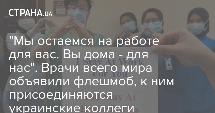"Мы остаемся на работе для вас. Вы дома - для нас". Врачи всего мира объявили флешмоб, к ним присоединяются украинские коллеги