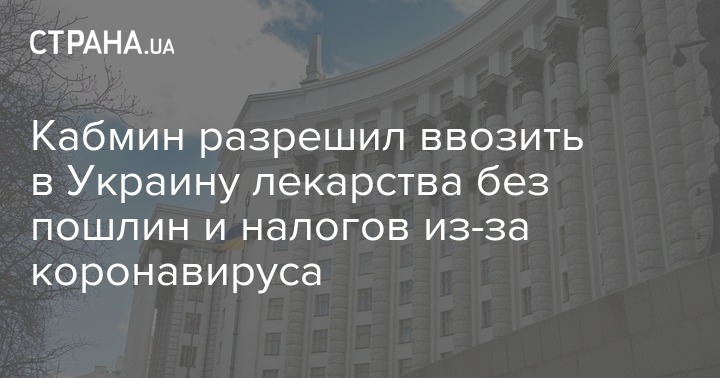 Кабмин разрешил ввозить в Украину лекарства без пошлин и налогов из-за коронавируса