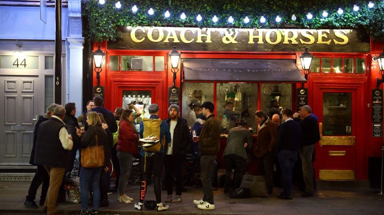 Люди стоят у паба в районе Лондона Сохо, фото: sky.com