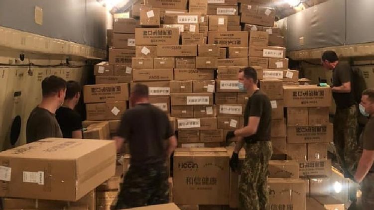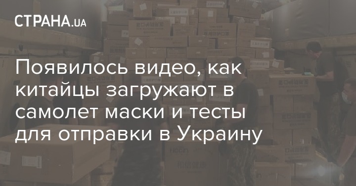 Появилось видео, как китайцы загружают в самолёт маски и тесты для отправке в Украину. Фото: facebook