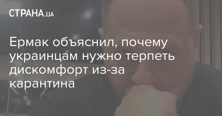 Глава Офиса президента Украины Андрей Ермак объяснил причины принятия жестких ограничительных мер во время карантина и призвал украинцев потерпеть в условиях дискомфорта ради сохранения своей жизни и здоровья, и своих сограждан.