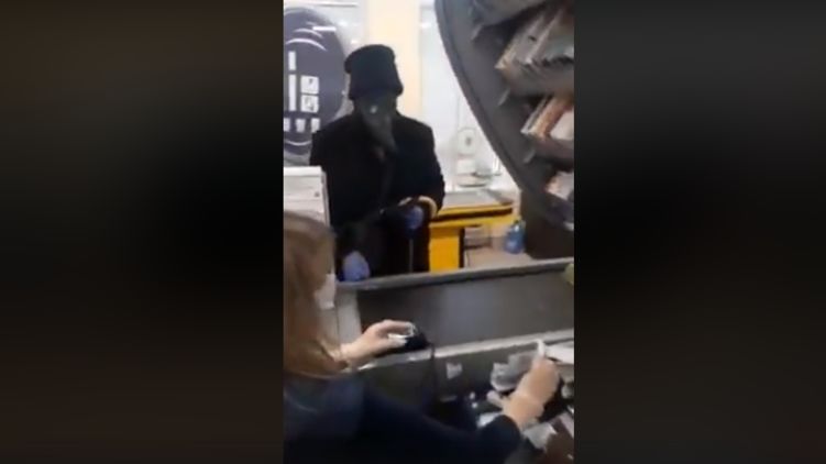 В Тернопольской области мужчина пришел в супермаркет в маске чумного врача. Скриншот: Facebook/ Petr Ovych