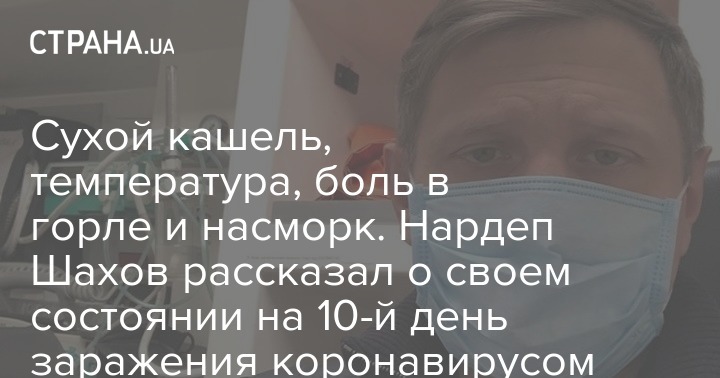Народный депутат Сергей Шахов (группа "Доверие"), заболевший коронавирусом COVID-19, заявил, что на 10-й день болезни у него наблюдается сухой кашель, небольшая температура, боль в горле и насморк.