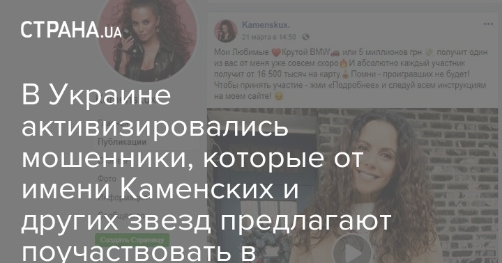 В Украине активизировались мошенники, которые от имени Каменских и других звезд предлагают поучаствовать в "беспроигрышном конкурсе"