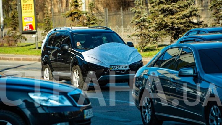По Киеву разъезжает автомобиль в защитной маске. Фото